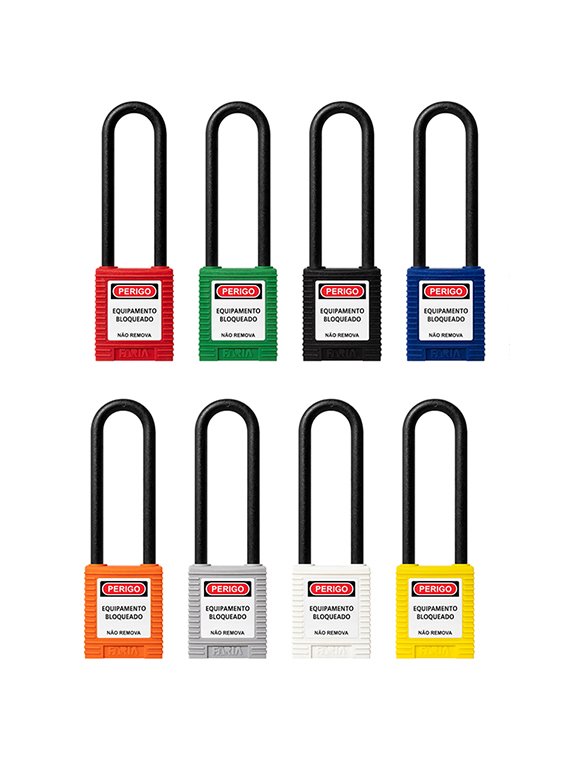 Os Cadeados de Bloqueio da Faria Equipamentos de Segurança possuem a função de efetuar diretamente ou a partir de demais dispositivos LOTO o bloqueio de uma determinada fonte de energia, impedindo que haja a reenergização de máquinas e equipamentos, assegurando desta maneira a integridade dos profissionais, processo e meio ambiente com relação a energias perigosas e não controladas. De maneira geral, cadeados de bloqueio com haste plástica são destinadas às atividades que envolvem energias do tipo elétrica e cadeados de bloqueio com haste metálica às atividades envolvendo demais tipos de energias.