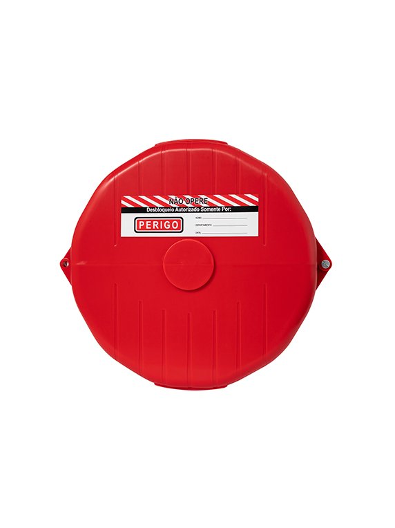 Bloqueio de Válvula Globo (volante) confeccionado Nylon na cor vermelho. Permite o bloqueio de válvulas com volantes de 273 a 355mm (10″ a 13″) de diâmetro.