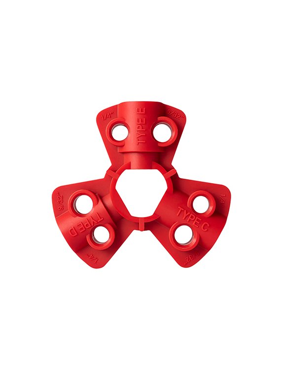 ESPECIFICAÇÃO: Dispositivo de Bloqueio para engate rápido confeccionado em Nylon na cor vermelho. Possibilita bloqueio de até 03 fontes (11mm, 12,5mm e 15mm) de maneira simultânea.